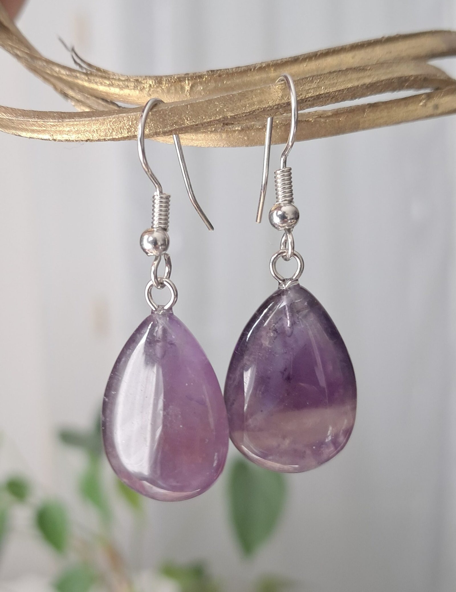 Boucles d’oreilles forme goute en Améthyste et acier inoxydable, Grade A